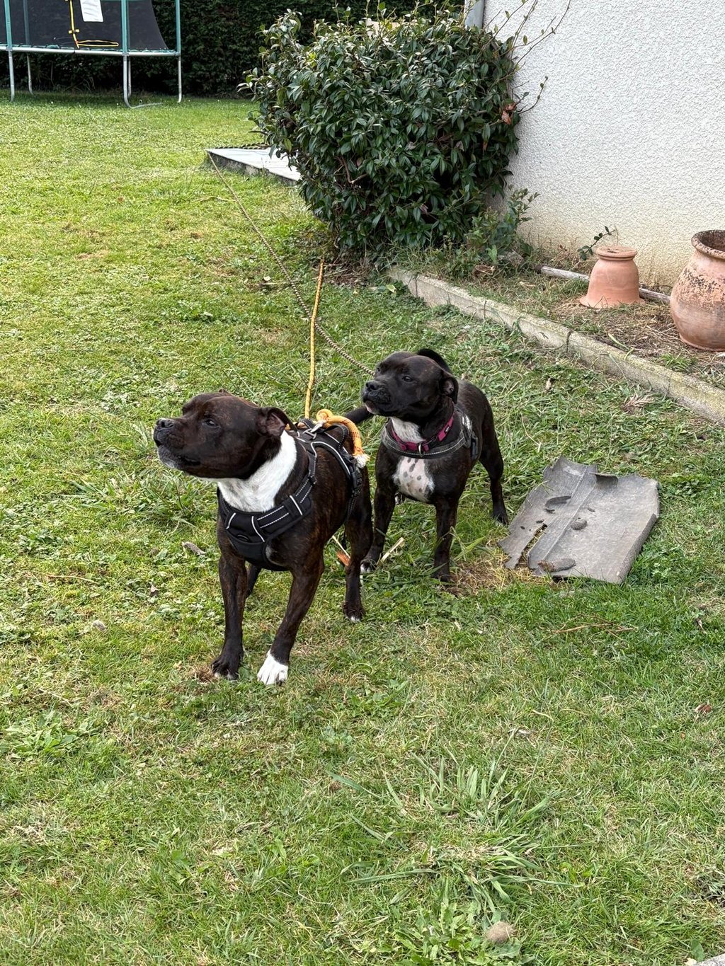 Un chien a échappé à la vigilance de sa propriétaire, c'est la chienne avec le collier rose sur la photo.